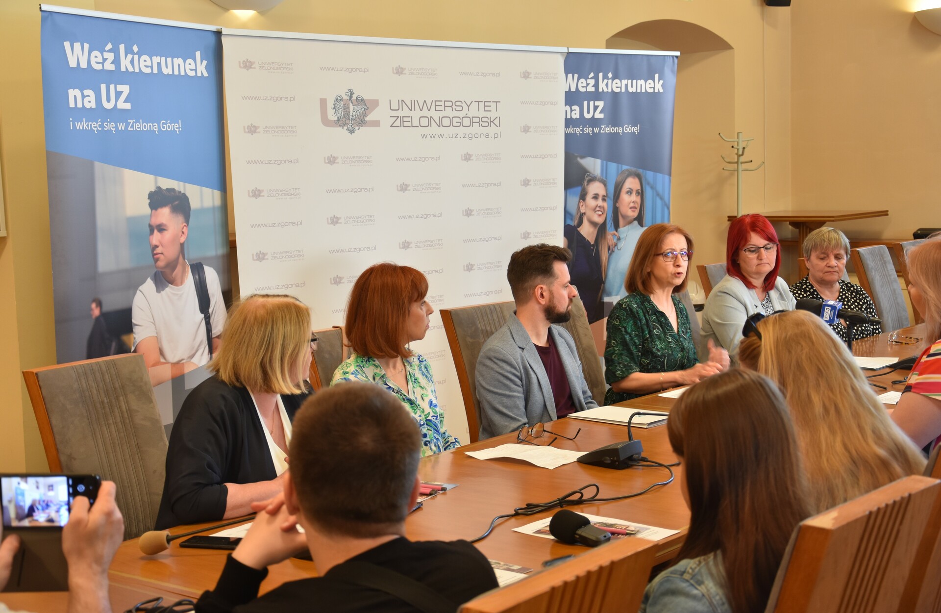 Konferencja prasowa - Rekrutacja 2023/24: mgr Ewa Sapeńko, dr Ewa Skorupka, dr Arkadiusz Tyda, dr hab. Barbara Literska, prof. UZ, dr hab. inż. Sylwia Myszograj, prof. UZ, mgr Grażyna Milewska-Wilk, fot. Biuro Promocji UZ