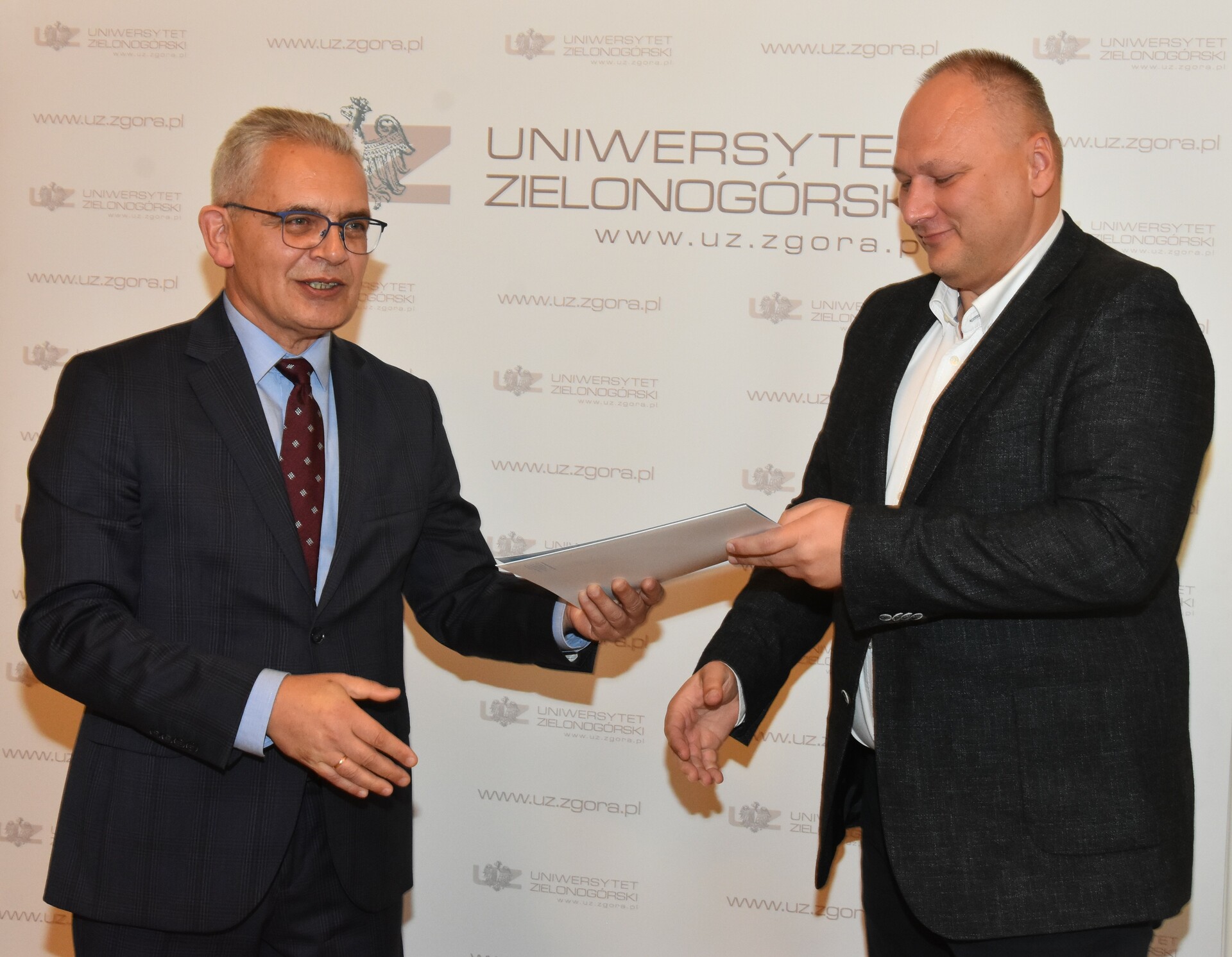 Rektor Uniwersytetu Zielonogórskiego - prof. dr hab. Wojciech Strzyżewski, dr hab. Stefan Konstańczak oraz Prezydent Miasta Zielona Góra - Janusz Kubicki; fot. J. Czarnecka