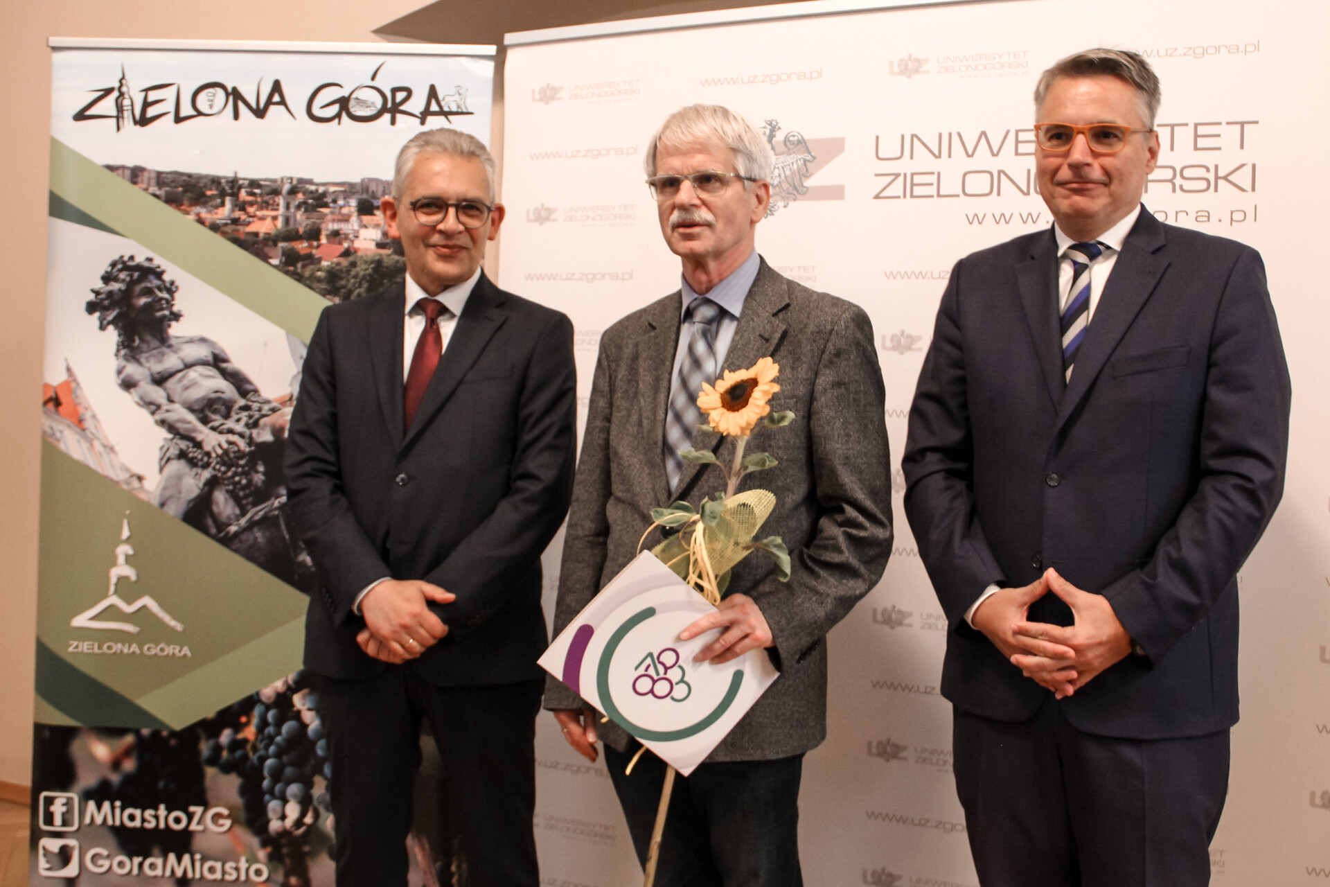 Rektor Uniwersytetu Zielonogórskiego - prof. dr hab. Wojciech Strzyżewski, dr hab. Marta Ruszczyńska oraz Prezydent Miasta Zielona Góra - Janusz Kubicki; fot. J. Czarnecka