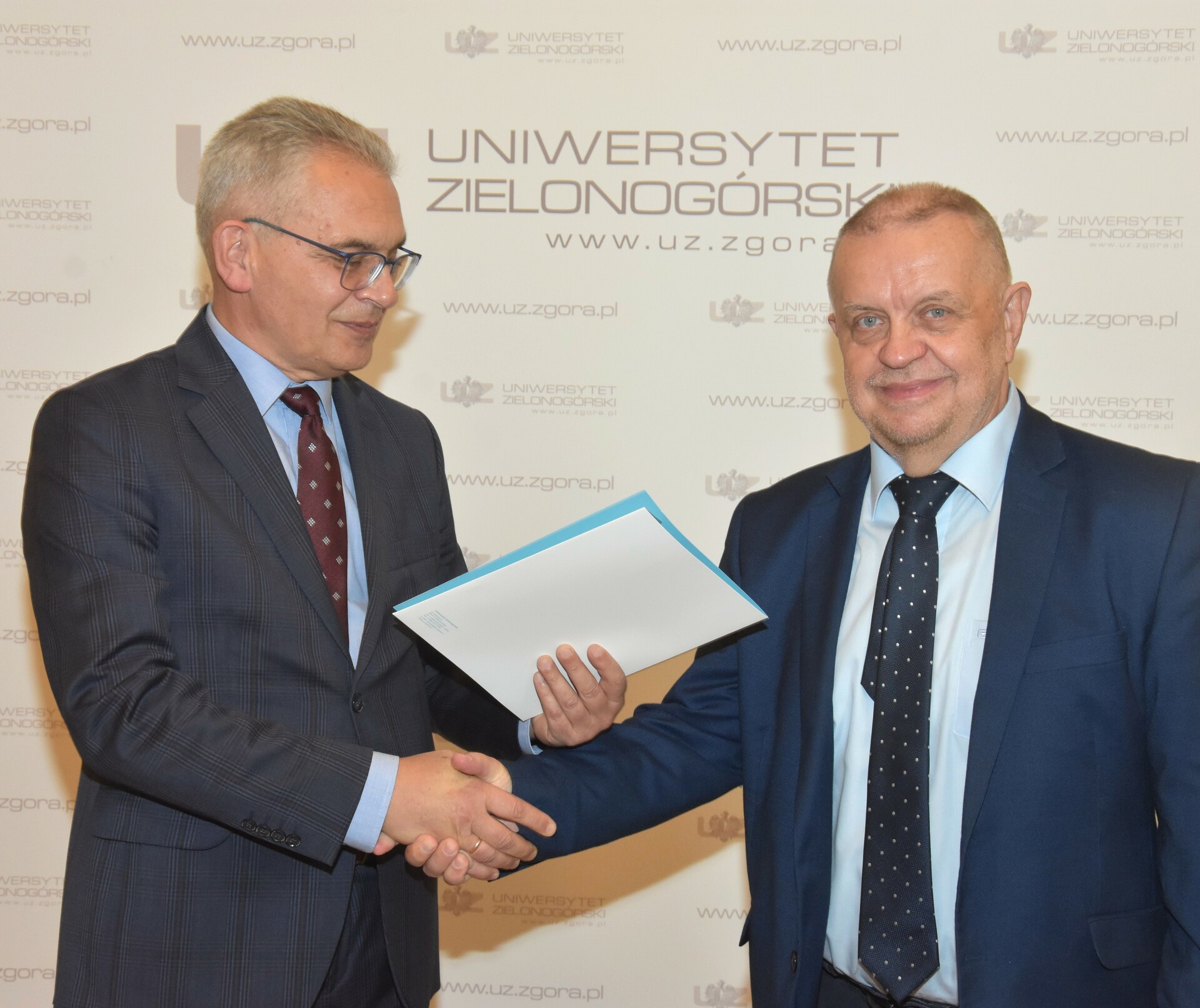 Dyrektor Instytutu Zastosowań Technologii i Rozwoju Edukacji (INTED) z Hanoi - dr. Ha Ngoc Anh oraz Rektor UZ - prof. dr hab. Wojciech Strzyżewski, fot. K. Adamczewski