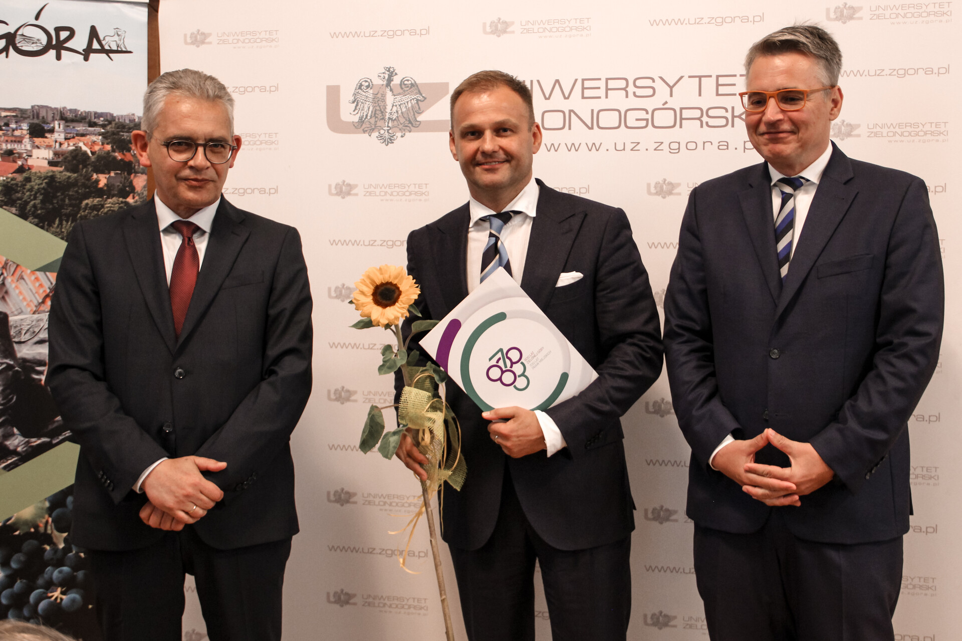 Rektor Uniwersytetu Zielonogórskiego - prof. dr hab. Wojciech Strzyżewski, dr hab. inż. Robert Smoleński oraz Prezydent Miasta Zielona Góra - Janusz Kubicki; fot. J. Czarnecka